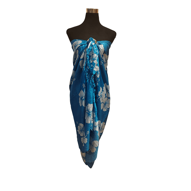 White Pareo with Blue Hibiscus